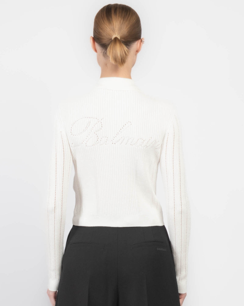 - Openwork Balmain signature logo on back