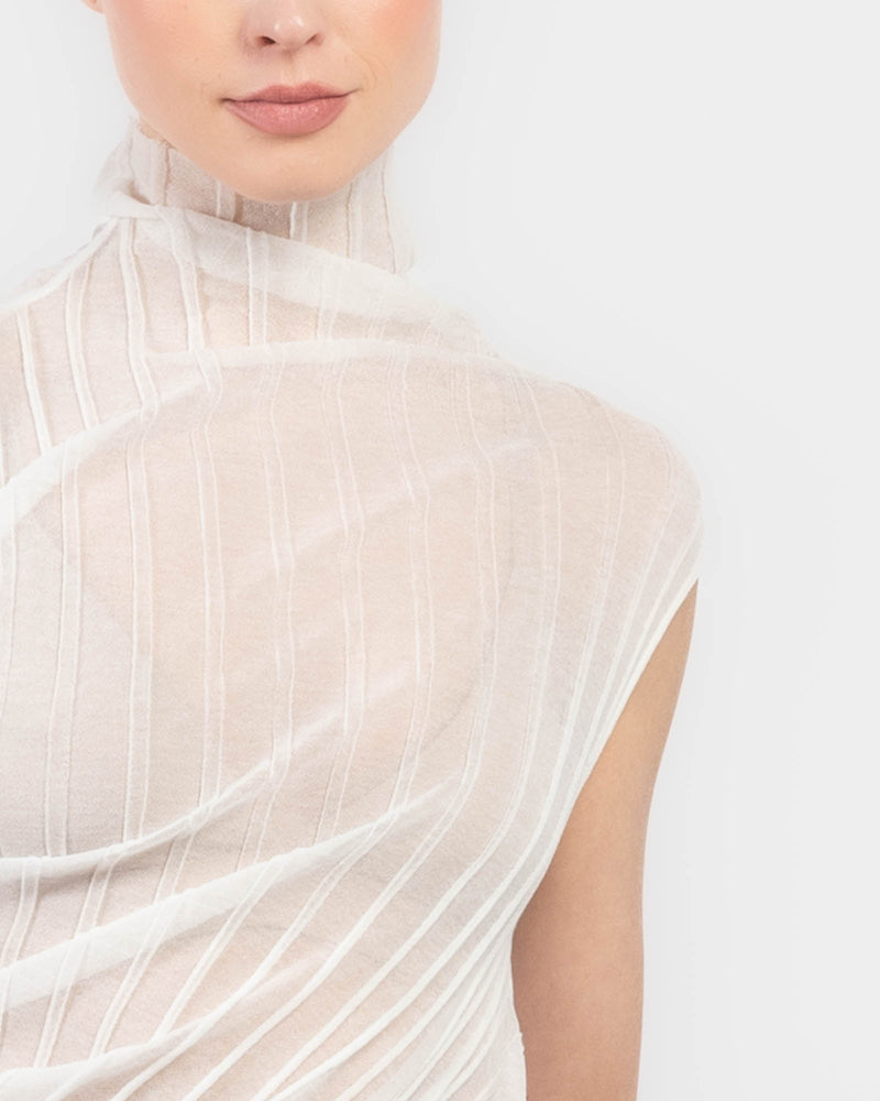 - Draped high neck